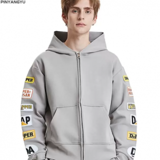 Custom Print Patchwork Hoodie Embroidery Patch Distressed Acid Wash Sun Faded Zip Rhinestone 100% Cotton OEM LOGO Hoodie
