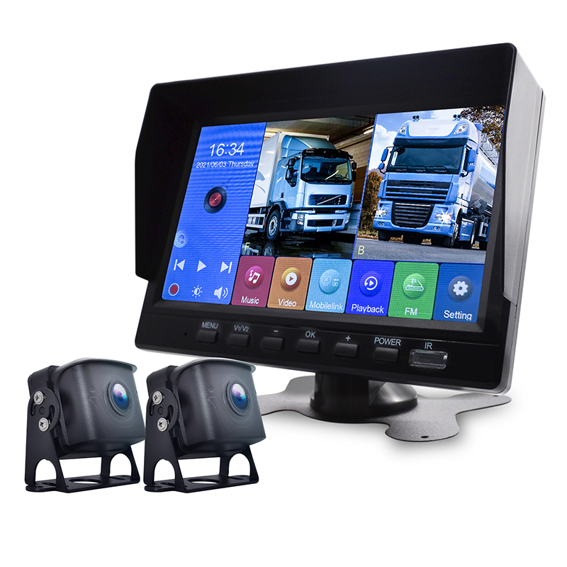 1. Screen size: 7 inches 2. Resolution: 1024*600 IPS 3. Power input: 9-36V 4. Front view 1080P rear view 1080P. Low-light full color camera or optional infrared 1080P, Angle 170 degrees, waterproof